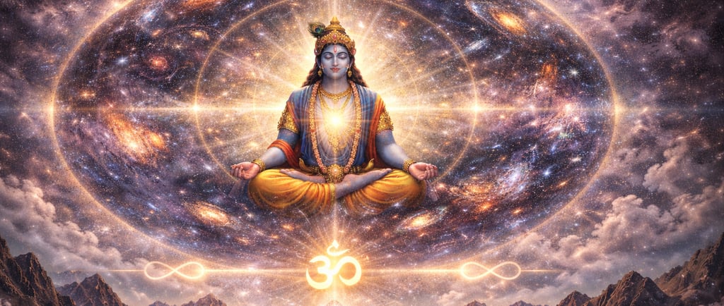 सर्वत्रगम् अचिन्त्यम् च कूटस्थम् अचलम् ध्रुवम्. All of them indicate one dot as a centre and circumference. What doesn’t decay is अक्षरम् . It has no space between the beginning and the end and hence no gradual decay as things around us undergo and hence अक्षरम् . Which cannot be specifically determined directionally, hence अनिर्देश्यम्. Means no particular direction it has . Means it is everywhere. Whatever is expressed is exhausted sooner or later. But what remains fresh, new, full and unexpressed always is अव्यक्तम् . What is present everywhere at the same time crosses time and space dimensions and hence is called सर्वत्रगम् . What is present here and there equally at the same time, which cannot be really fully comprehended and hence अचिन्त्यम् . It is the highest of all . The highest point gives you an expanse of a wider vision . So where your perception sees but no differences as seen from the top of a mountain and hence कूटस्थम् . Which cannot be transported from one point to the other as it is already there at different points at the same time . You find it here and there as a constant and hence called अचलम् . Which remains changeless always. Change is again a difference between two or more points but it exists the same on every point and hence called ध्रुवम् . All these adjectives define the invisible dot with its expanse and the centre being the same. A centre can be reached from every direction(परि उपासते) . Hence Krishna says those who perceive the invisible dot through समबोध actually reach Me . Isn’t here Krishna saying I am the universe and the universe is the centre everywhere . Whatever is everywhere is timeless continuity . Hence the universe is that Intelligent Being who we adore as Krishna . But it is timeless continuity and so is Krishna. If your perception stops seeing differences, you have reached the invisible dot. But what stop you from seeing this Simplicity as it is are the group of your sensory systems vibrating at different frequencies, making perception of this Simplicity multilayered, bringing in the space and time in between. What is the way then to perceive that Simplicity as it is? सन्नियम्य इन्द्रिय-ग्रामम् . Equalising all sensory frequencies through discipline. This will align all sensory frequencies to one . That means your perception then shall be one — समबोध — of seeing the invisible dot, the centre of centres, the universe or Krishna here and there everywhere.